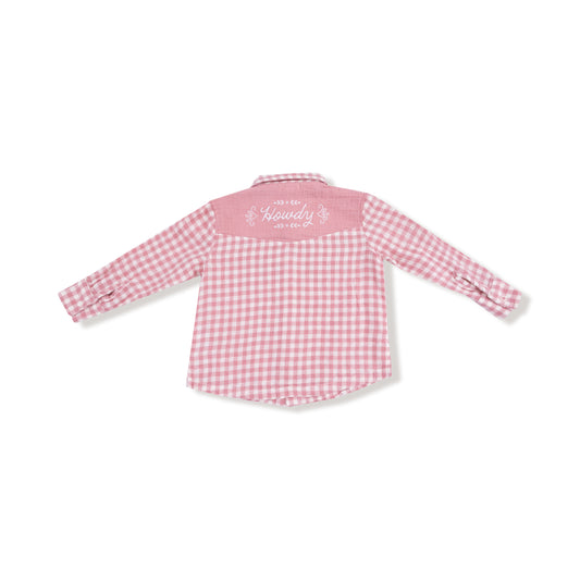 Long Sleeve Western Pearl Snap Shirt - Rose Pink Plaid