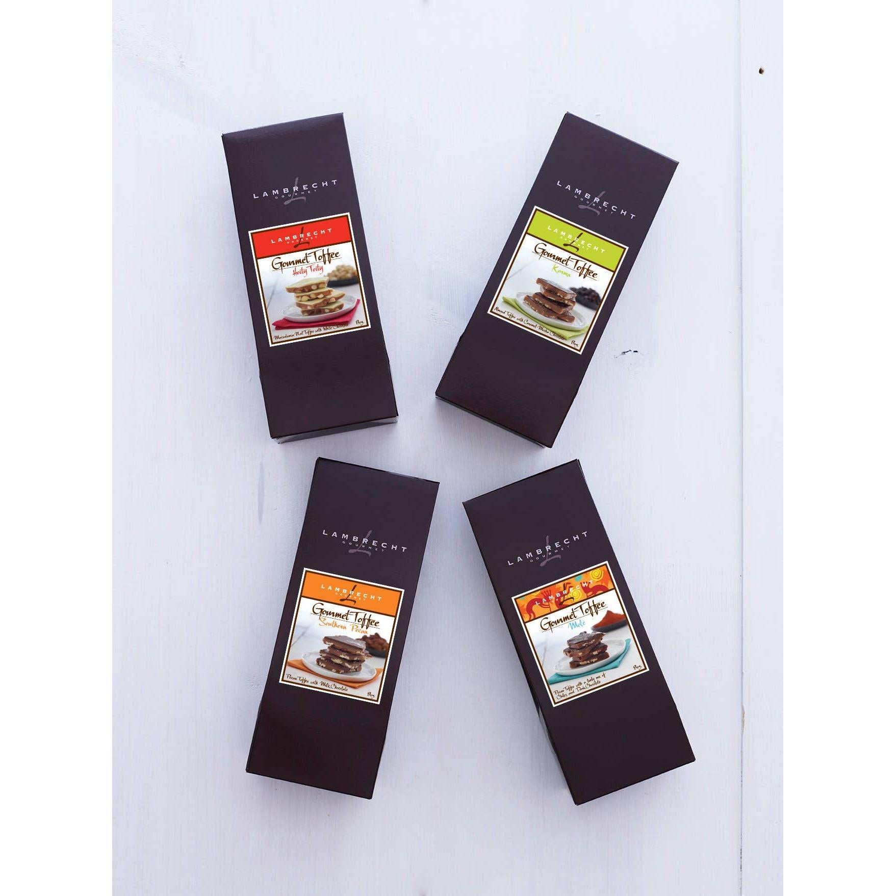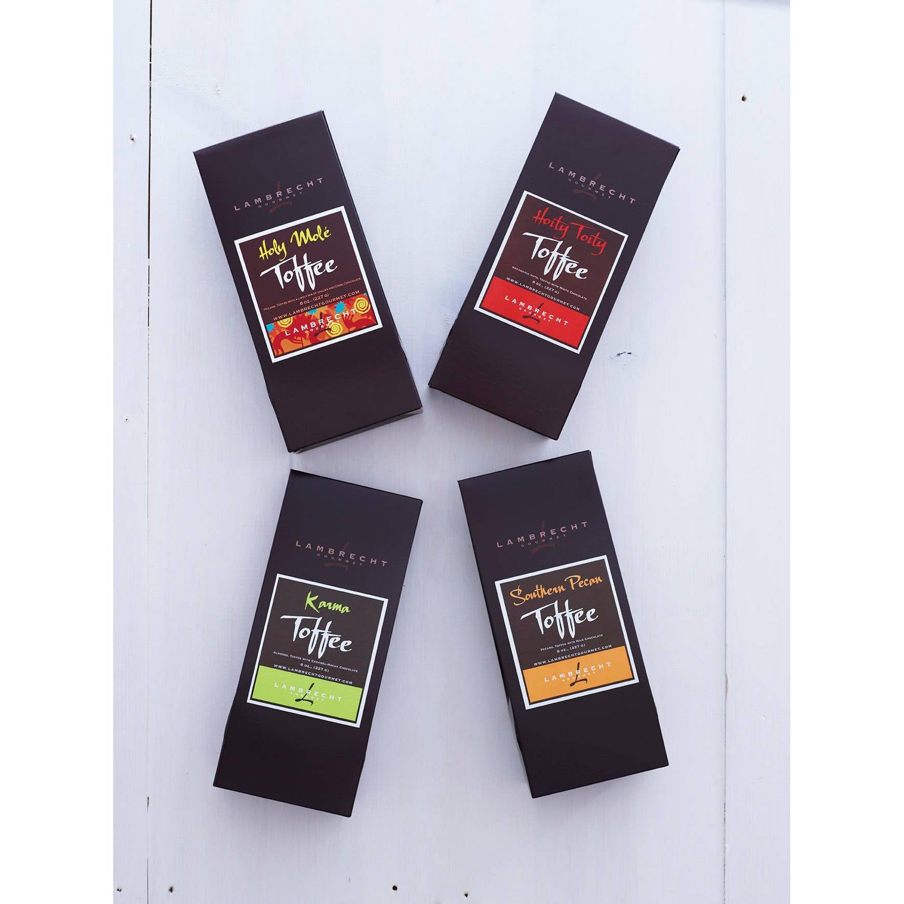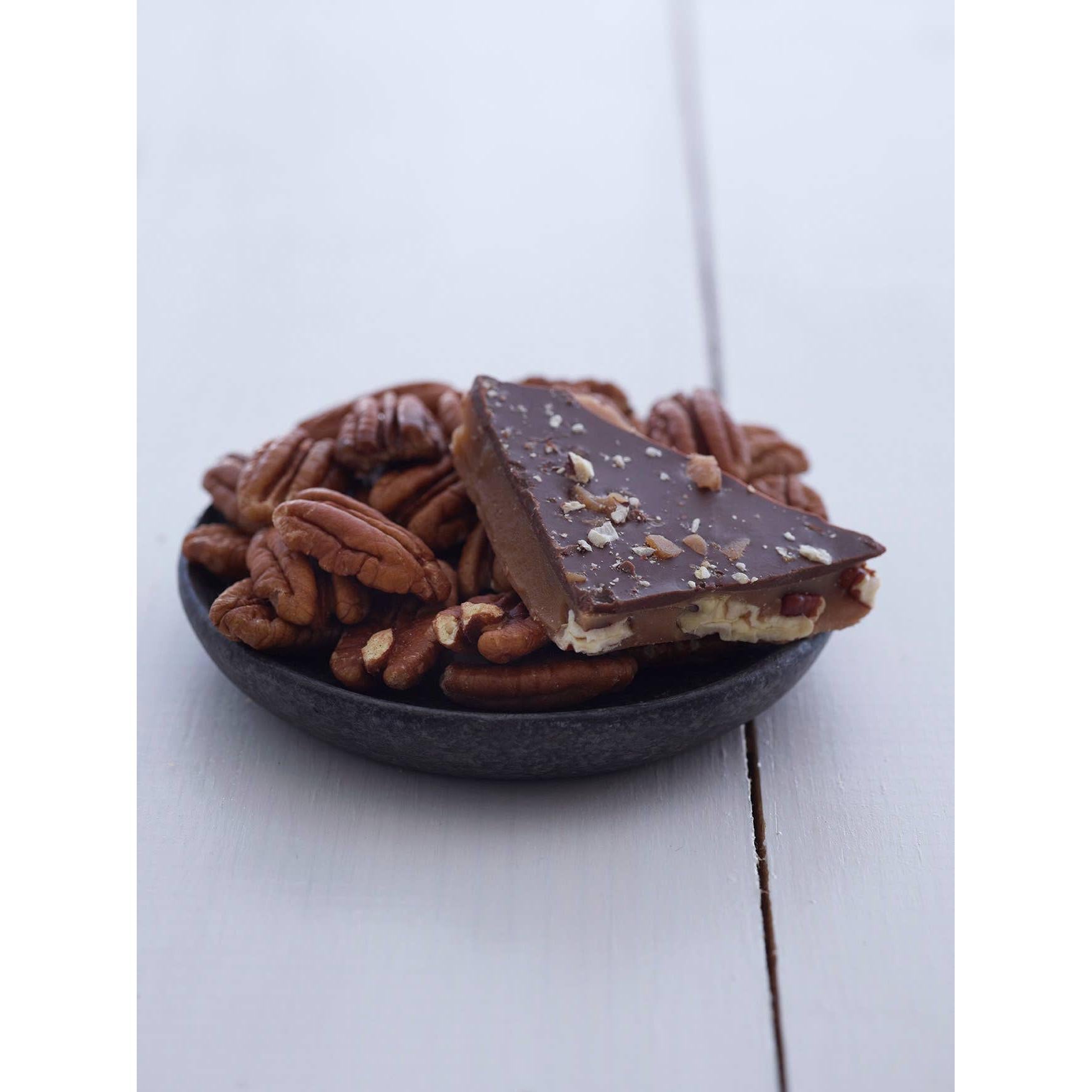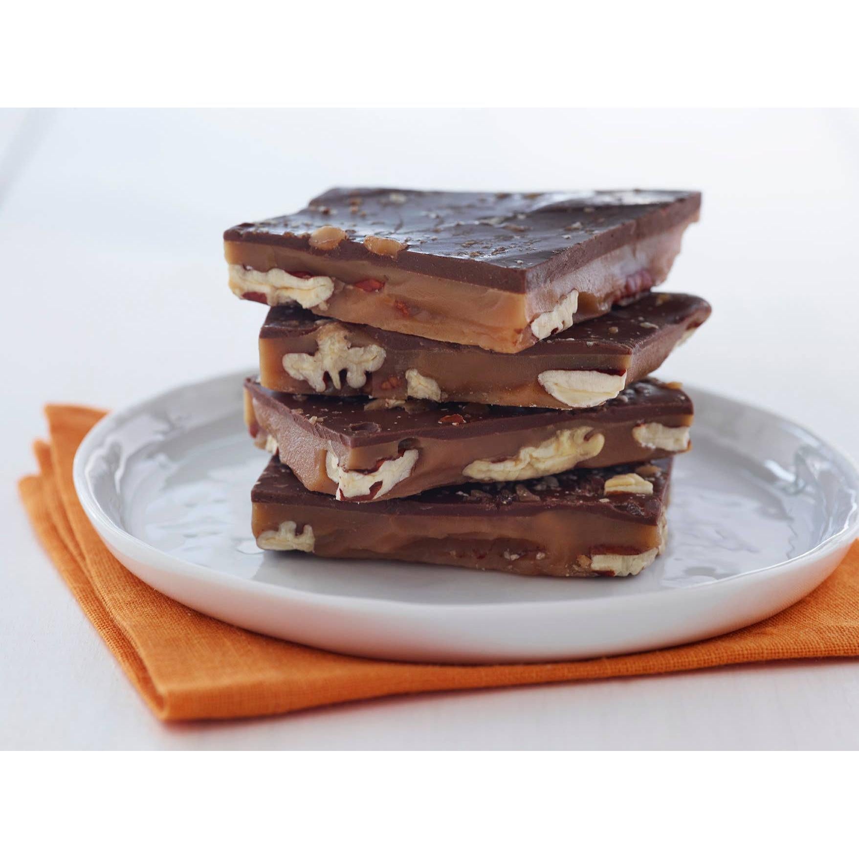 Our traditional toffee starts with slow roasted pecan halves covered in rich, creamy butter toffee and then topped off with imported milk chocolate. Your first bite won’t be your last.