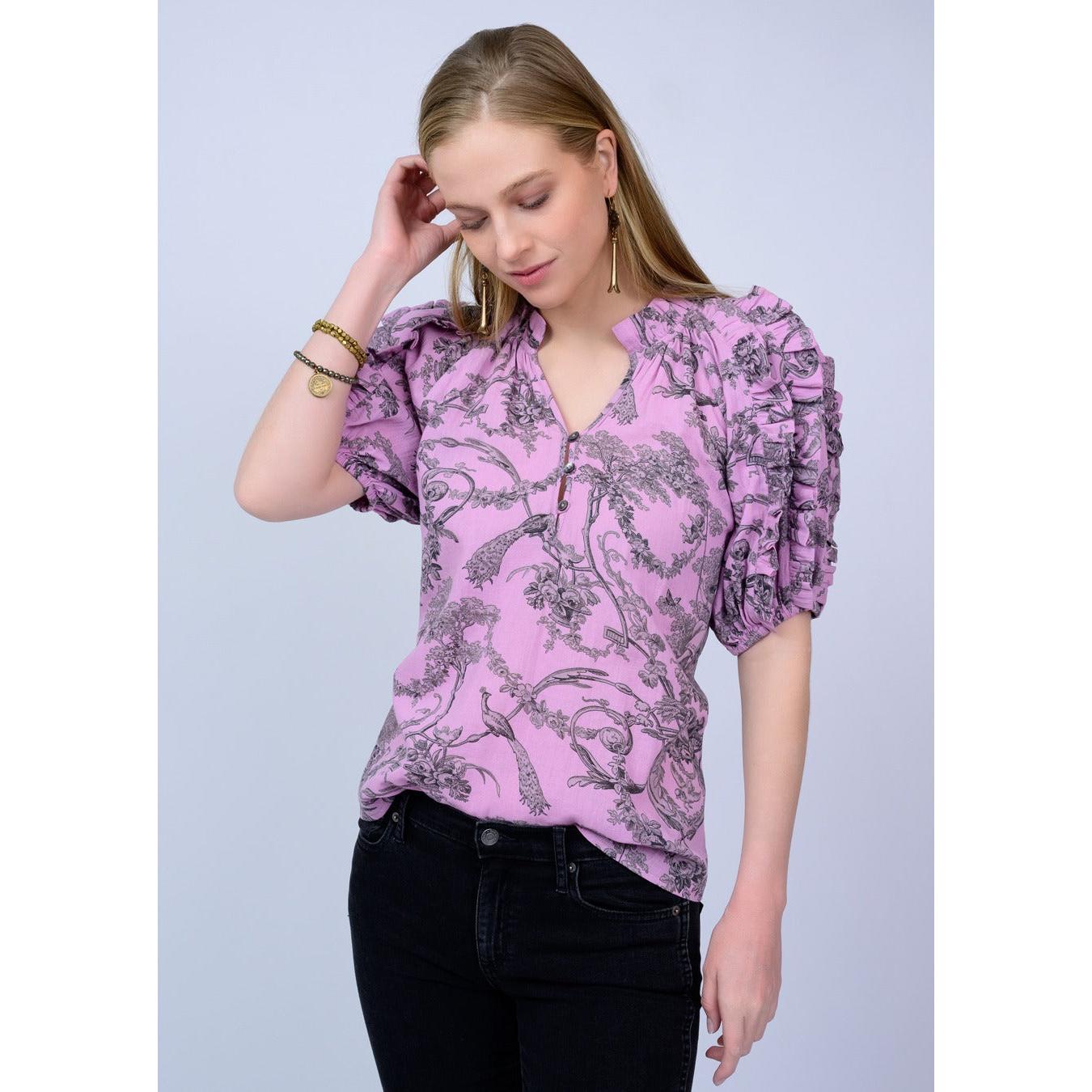 Elevate your wardrobe with the Ivy Jane Toile Ruffle Sleeve Top, featuring delicate ruffled sleeves that add a touch of feminine charm. Crafted for both comfort and style, this top pairs effortlessly with jeans or skirts, making it a versatile choice for any fashion-forward outfit. Perfect for day-to-night wear, it brings a subtle yet sophisticated flair to your everyday look.