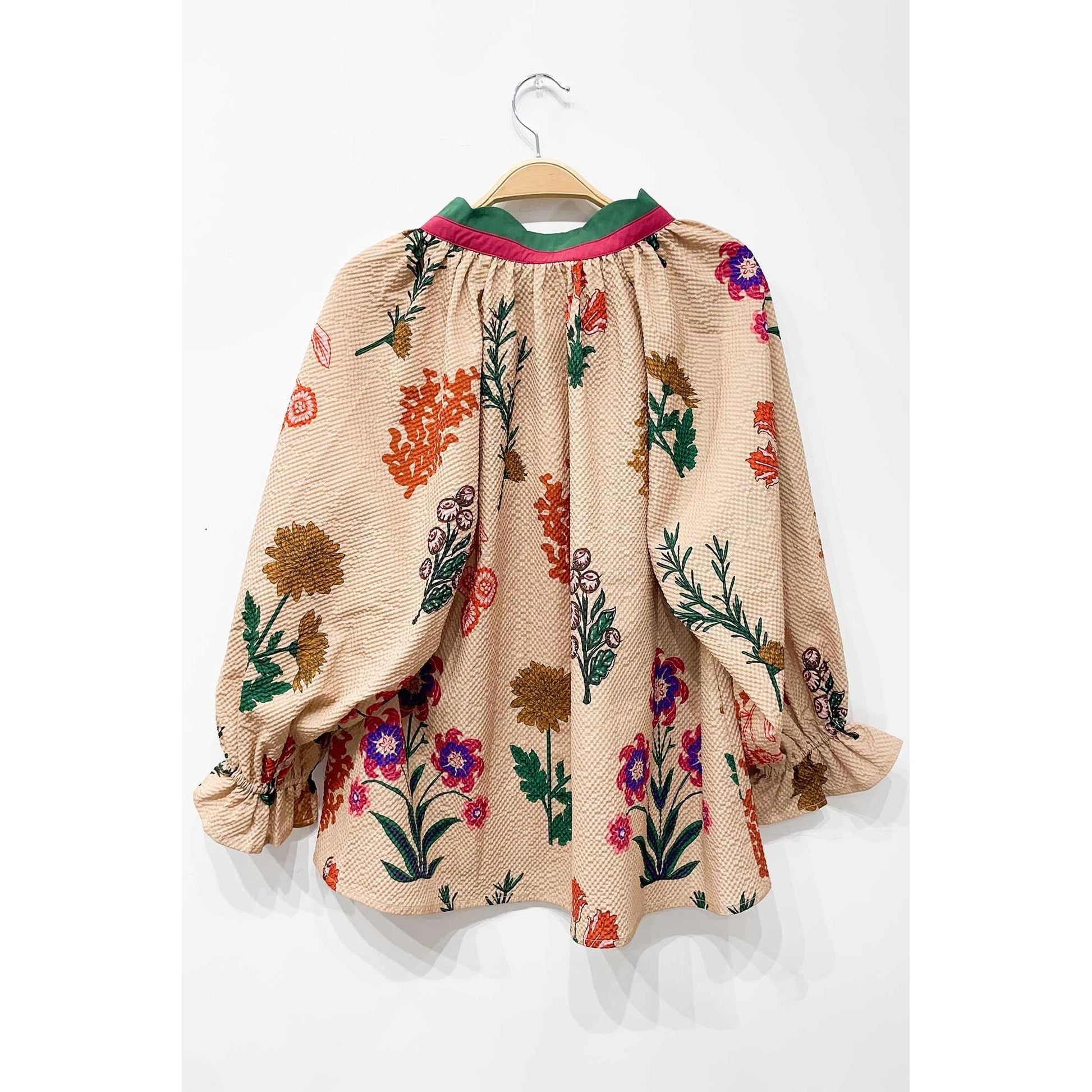 • Long puff sleeves with elastic cuffs and tie detail