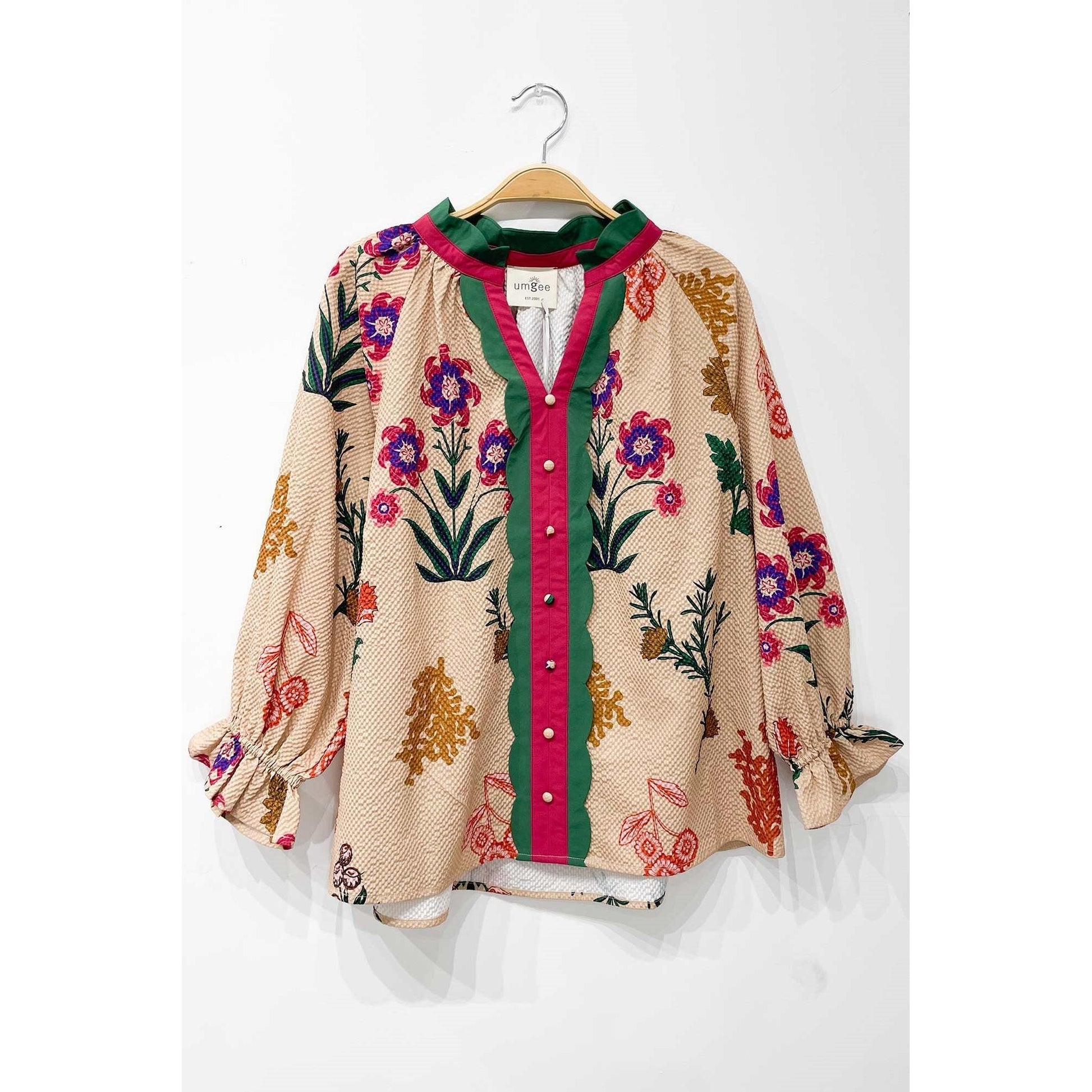 Mix Floral Textured Blouse with Scalloped Trim