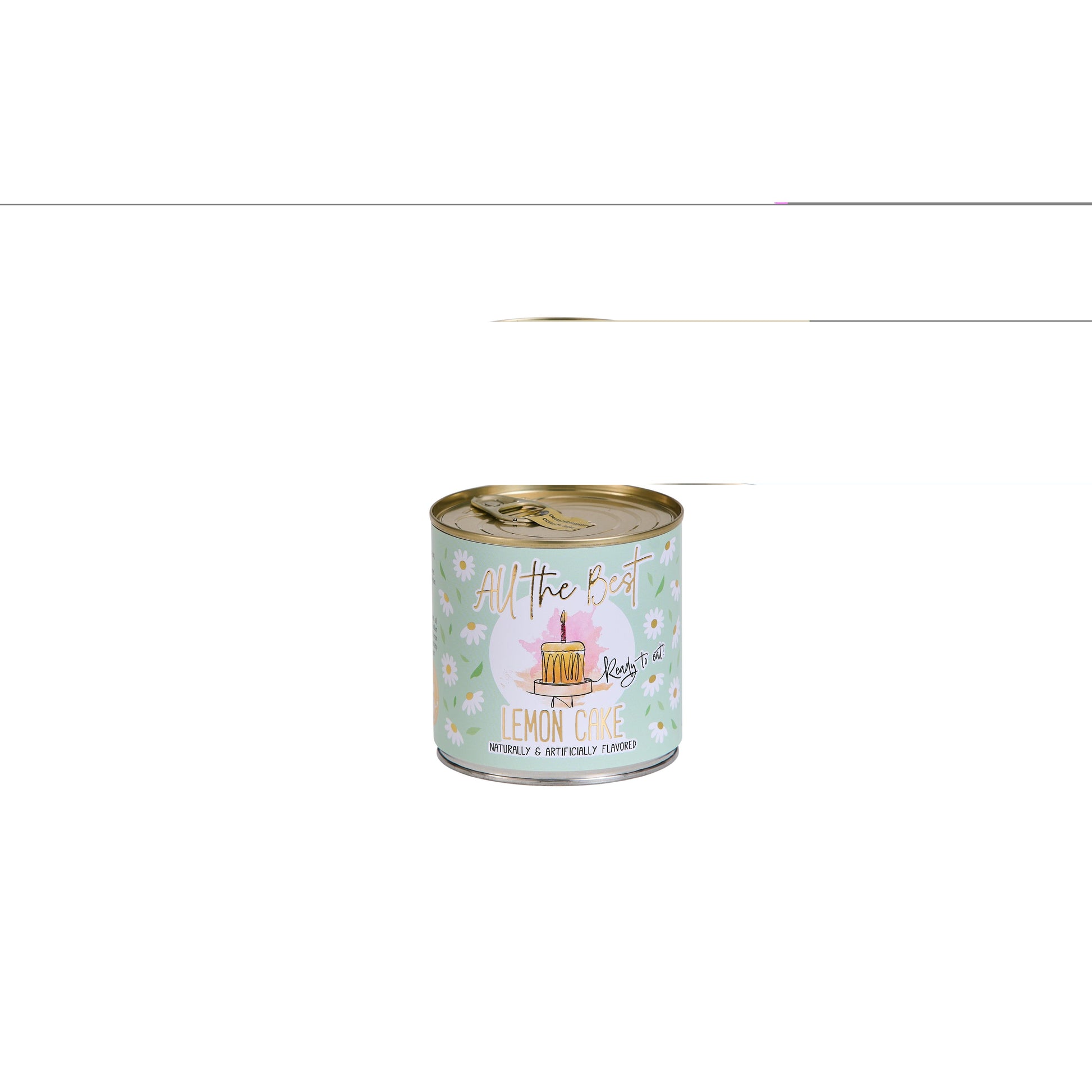Introducing the CANCAKE: a small, freshly baked cake with a golden candle, made using traditional recipes and baked in a can.