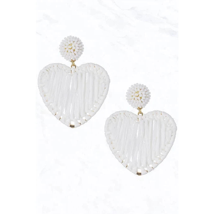 Colorful Raffia Wrapped Heart Post Dangle Earrings