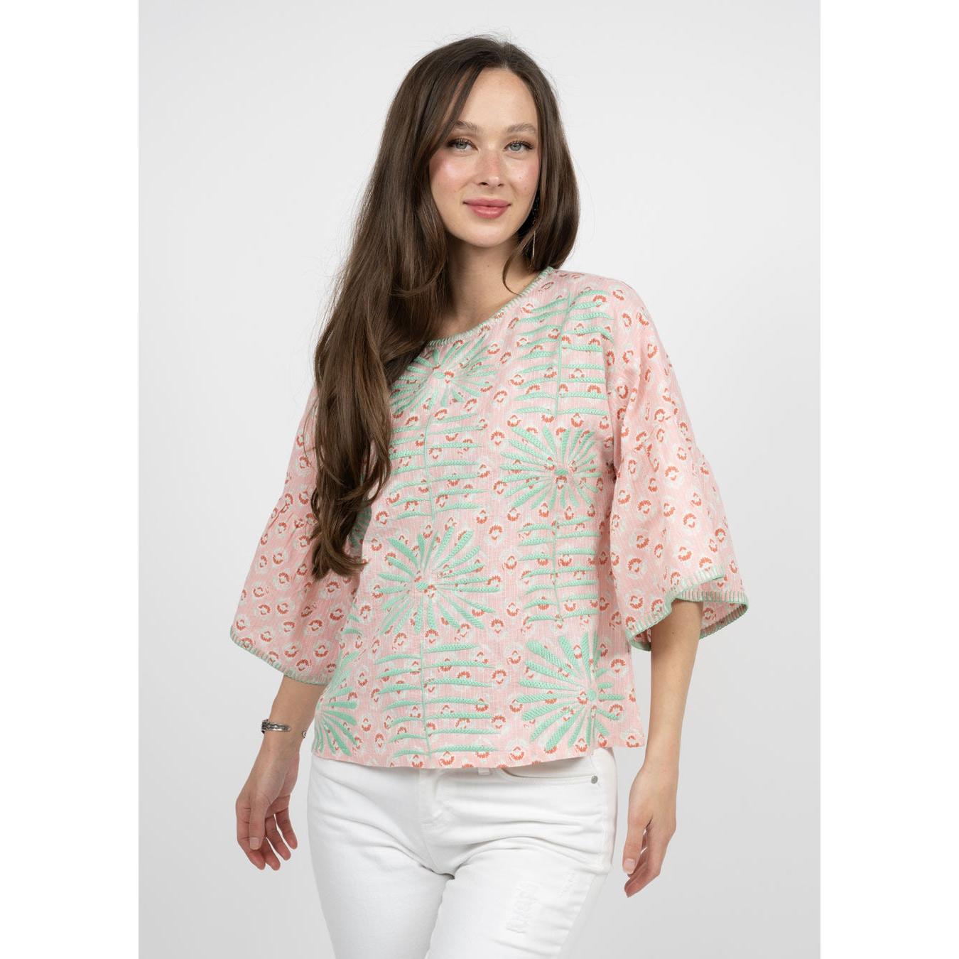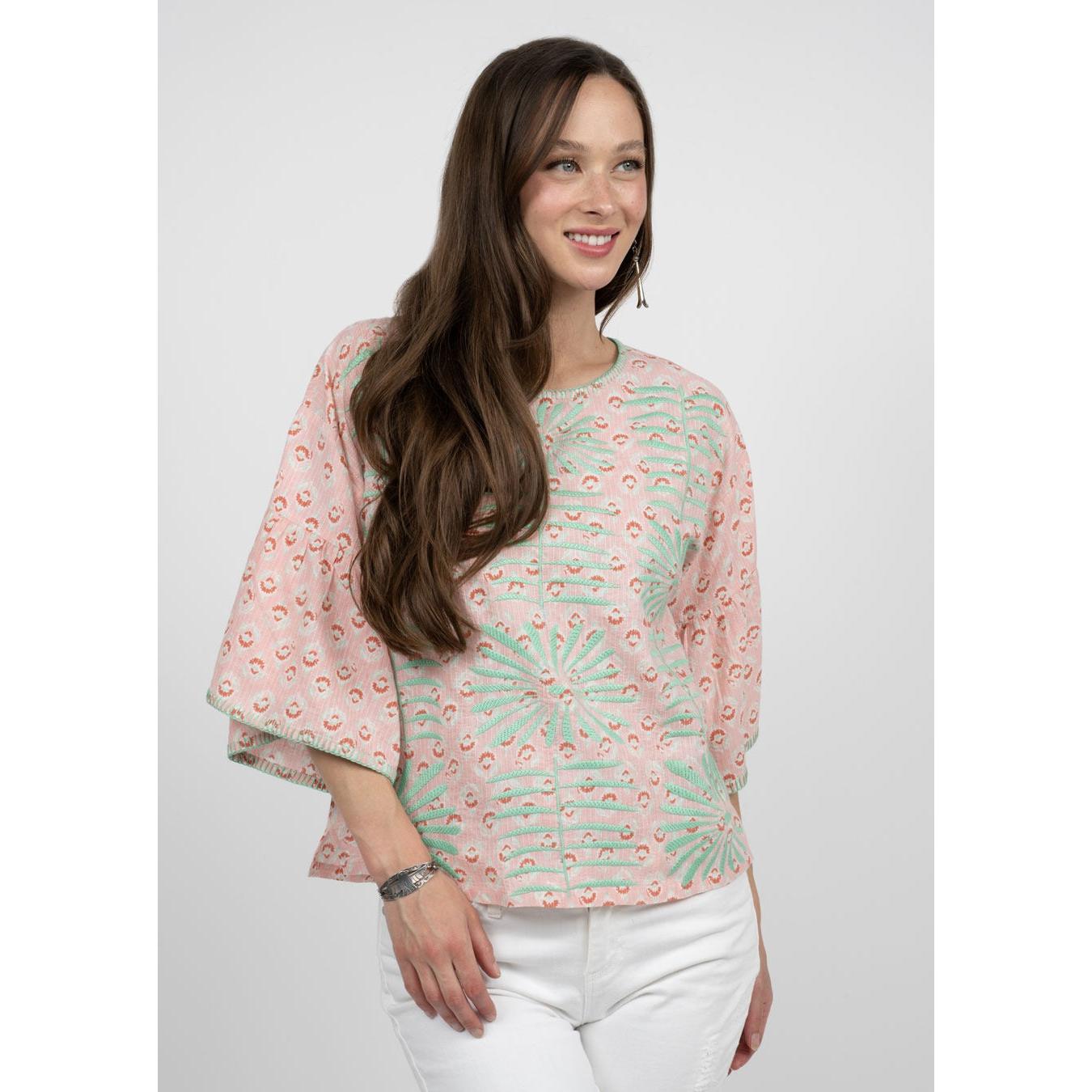 Introducing the Elena Embroidered Top by Sister Mary. This top features a beautiful pink color, adding a pop of brightness to your wardrobe. Its delicate embroidery adds a touch of elegance to any outfit. Dress up or down, this versatile piece will effortlessly elevate your style.