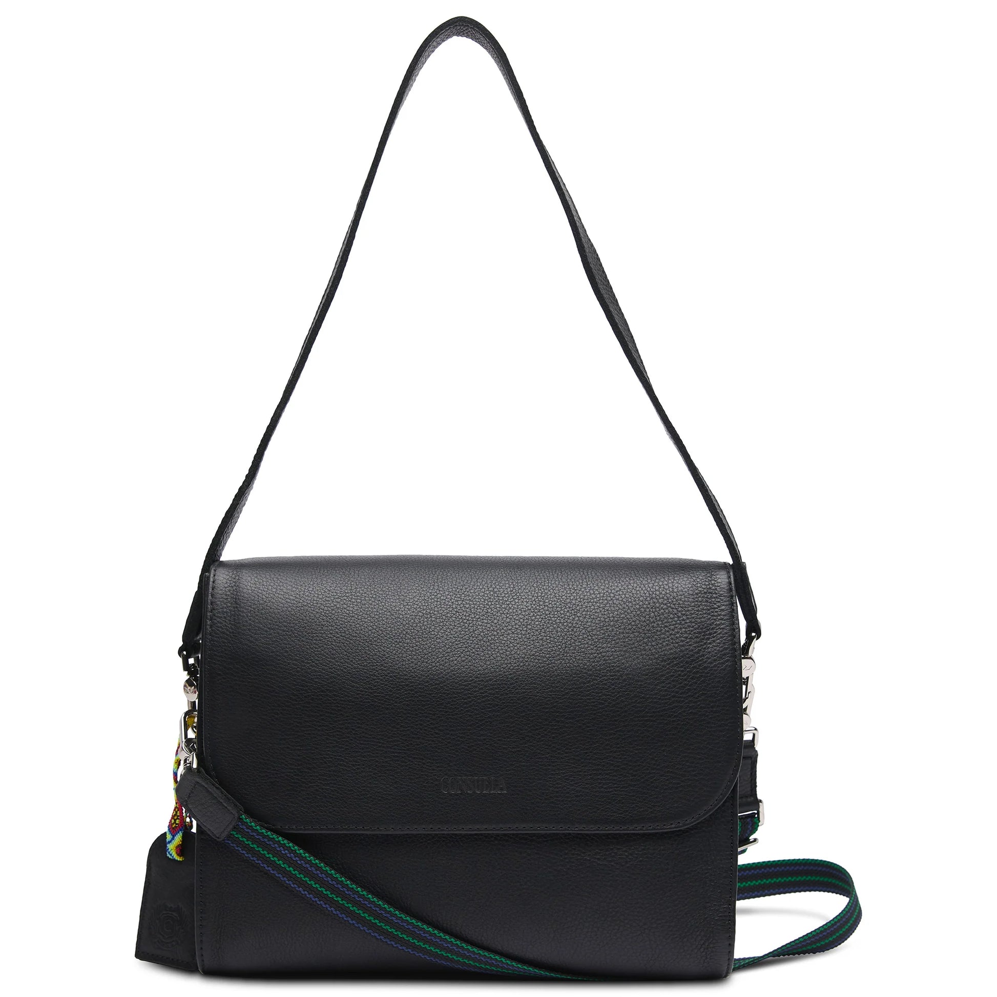 - Adjustable woven crossbody strap