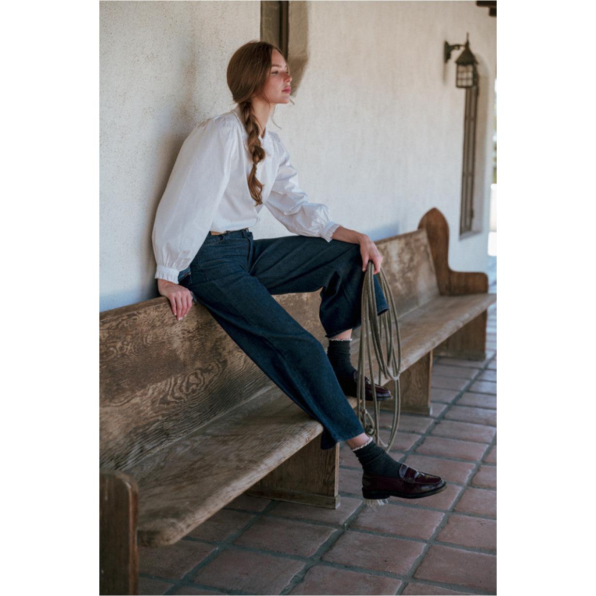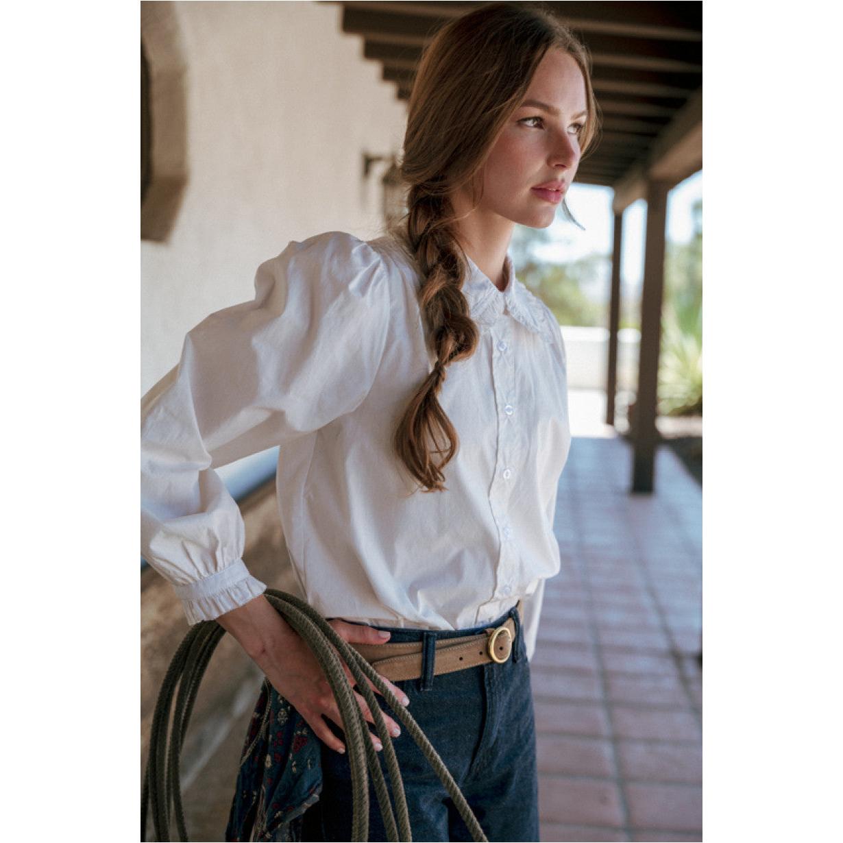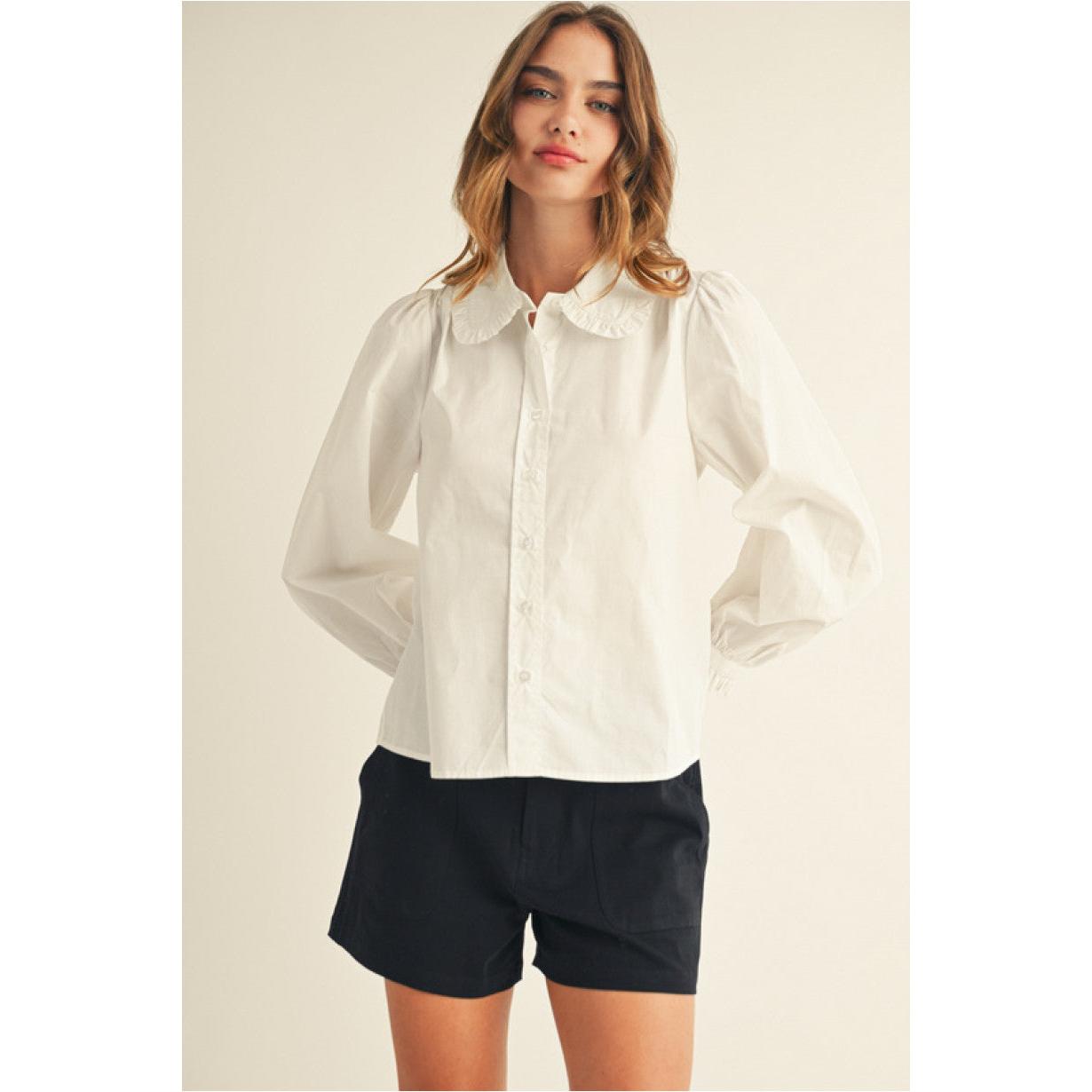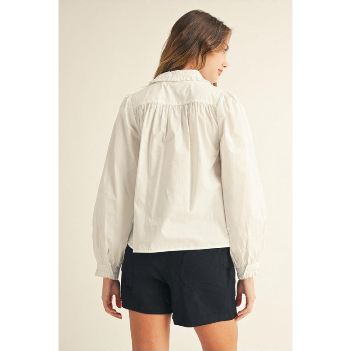 Ruffle cuffed long sleeves button down shirt, ruffle detail collared.