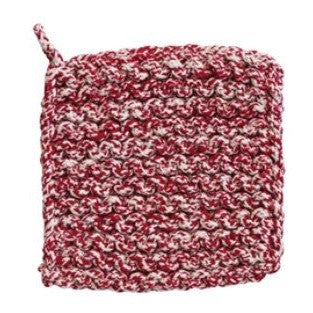This melange cotton crocheted pot holder set in red, green, and brown is a stylish and practical addition to the kitchen. It features a square shape and a melange design, creating a cozy and rustic look. This set is perfect for handling hot pots and pans, as well as placing under dishes or bowls to protect surfaces from heat and scratches. Made of high-quality cotton, it is soft, durable, and machine-washable. The set measures 8 inches in length and 8 inches in width, making it a sturdy and inviting addition to the kitchen. It's perfect for creating a cozy atmosphere or impressing guests with culinary skills. A cozy and rustic set of 3 pot holders that feature a square shape and a melange cotton crocheted design in red, green, and brown colors. A stylish and practical pot holder that can protect hands and surfaces from hot pots and pans, and add some texture and warmth to the kitchen decor. This pot holder features a loop for convenient storage and access, allowing easy hanging on a hook or handle.