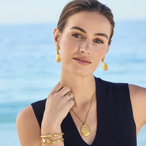 Signature highlighted crystals accent this golden design inspired by the orbit or path the earth takes around the sun.