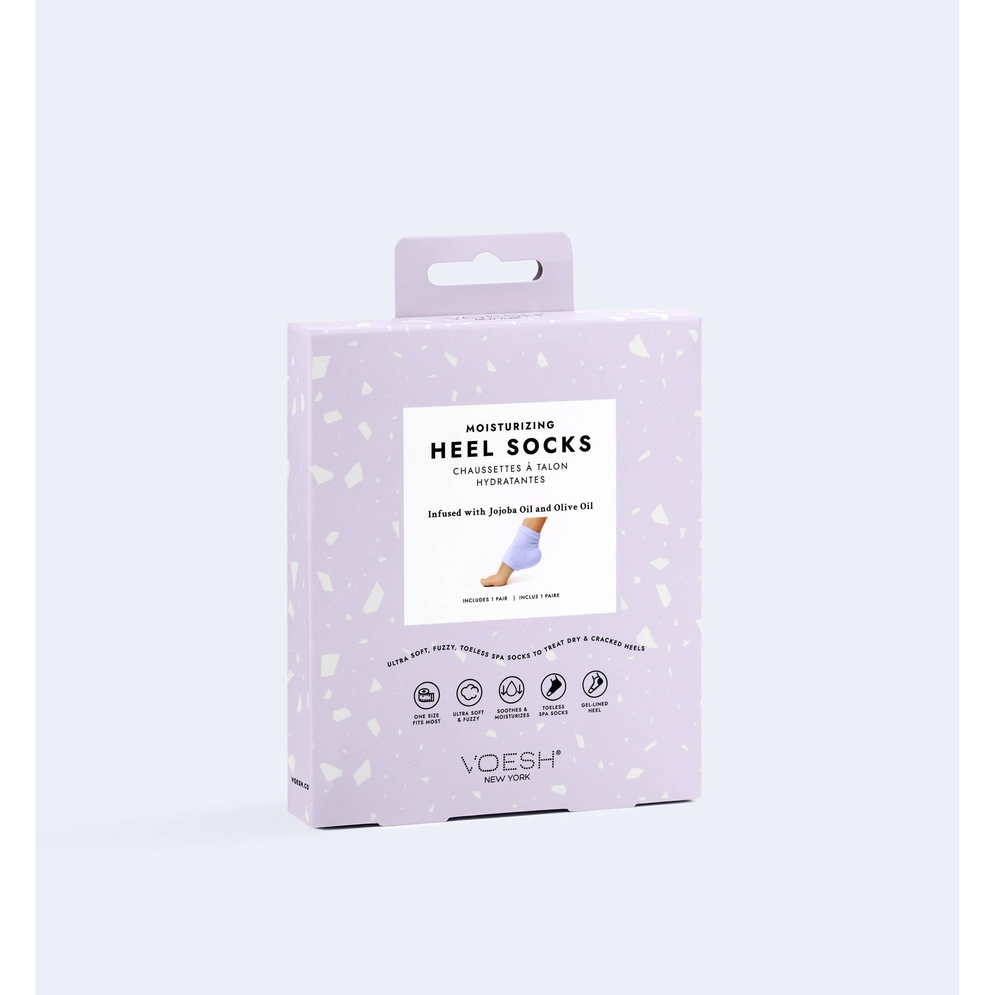 Enhance your retail inventory with our purple Moisturizing Heel Socks. These socks feature a latex-free gel lining that activates with body heat to lock in moisture and repair dry, cracked heels in just 30 minutes. The toeless, breathable design keeps feet cool and dry. Made to fit most foot sizes, including wider feet, these socks are great for everyone. Best For: Dry, Cracked Heels Callused Feet Overnight Hydration Treatments What's Inside: 1 Pair of Gel-Lined Purple Moisturizing Heel Socks Fabric Composition: 85% Polyester, 15% Elastane, & Gel: Latex-Free Silicone Moisturizing Heel Socks - Purple Formulated Without BEESWAX, SYNTHETIC FRAGRANCES, SYNTHETIC COLORANTS, PARABENS, PHTHALATES, & MORE