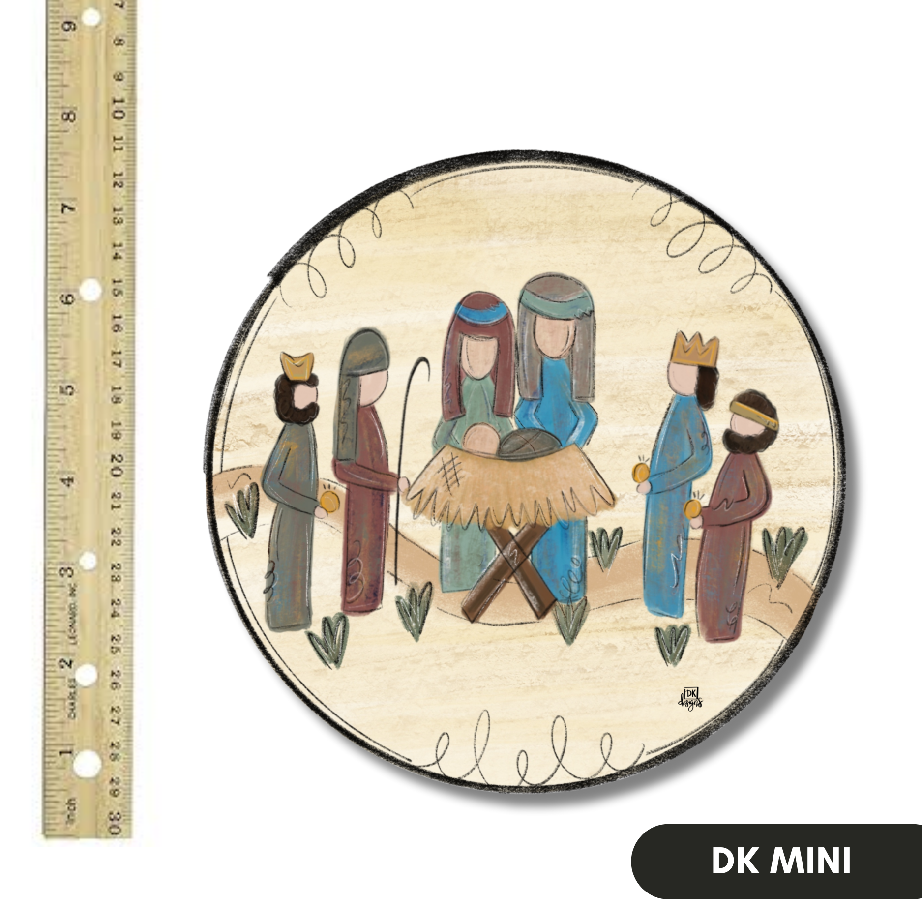 Make a statement with the Nativity Circle Mini! This DK Mini is a charming wooden design featuring a nativity scene with baby Jesus surrounded by Mary, Joseph, Shepherds, and Kings. This mini is printed on moisture-resistant, high-quality 1/4" board and sealed with two coats of gloss finish for lasting durability. Attach it easily to one of our Door Hangers for Minis with the included loop side of Velcro for a versatile display. Key Features: * Sun-Safe & Fade-Resistant * Moisture-Resistant High-Quality Board * 8” * Perfect for the DK Door Hangers for Minis * Indoor & Outdoor Ready * Note: Placement Under Cover Helps Maintain Quality & Longevity * Proudly Made in the U.S.A