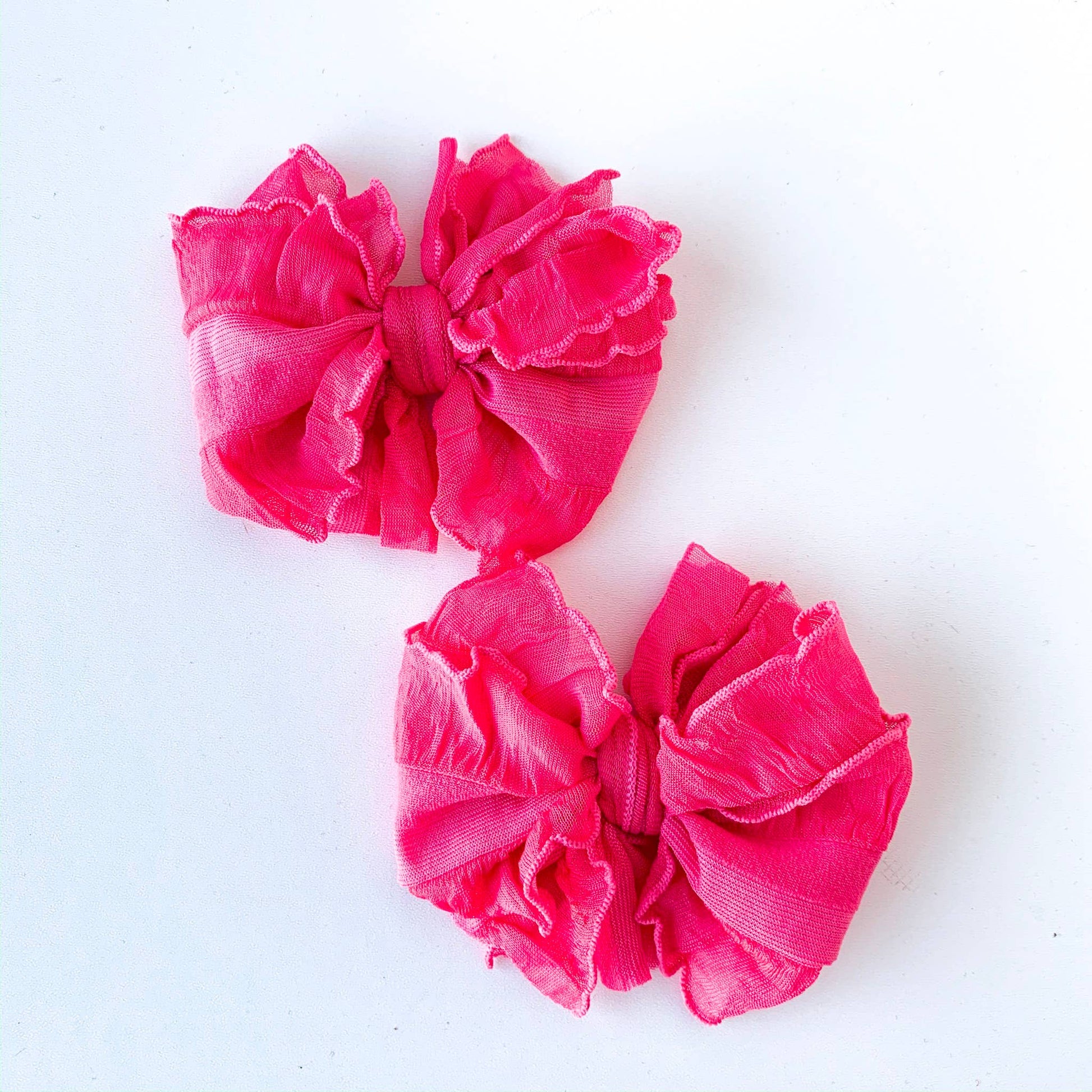 This adorable ruffled Piggy Set is a great accessory. They are made of our popular ruffled fabric, attached to a metal clip, and backed with felt. The set comes on a single clip card ready to hang for display.