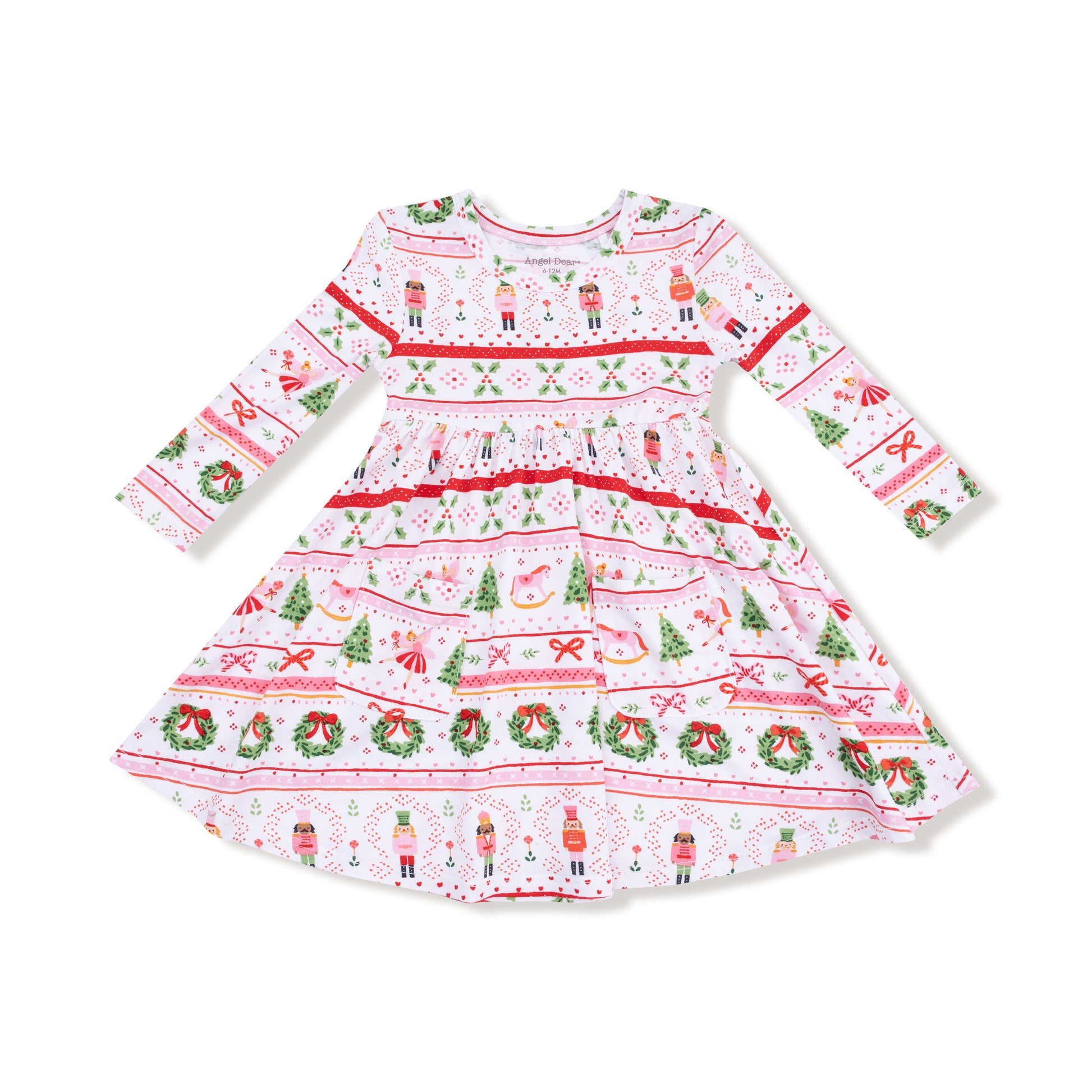 Sugar Plum Fairy - Nutcracker Fair Isle Pink Twirly Long Sleeve Dress