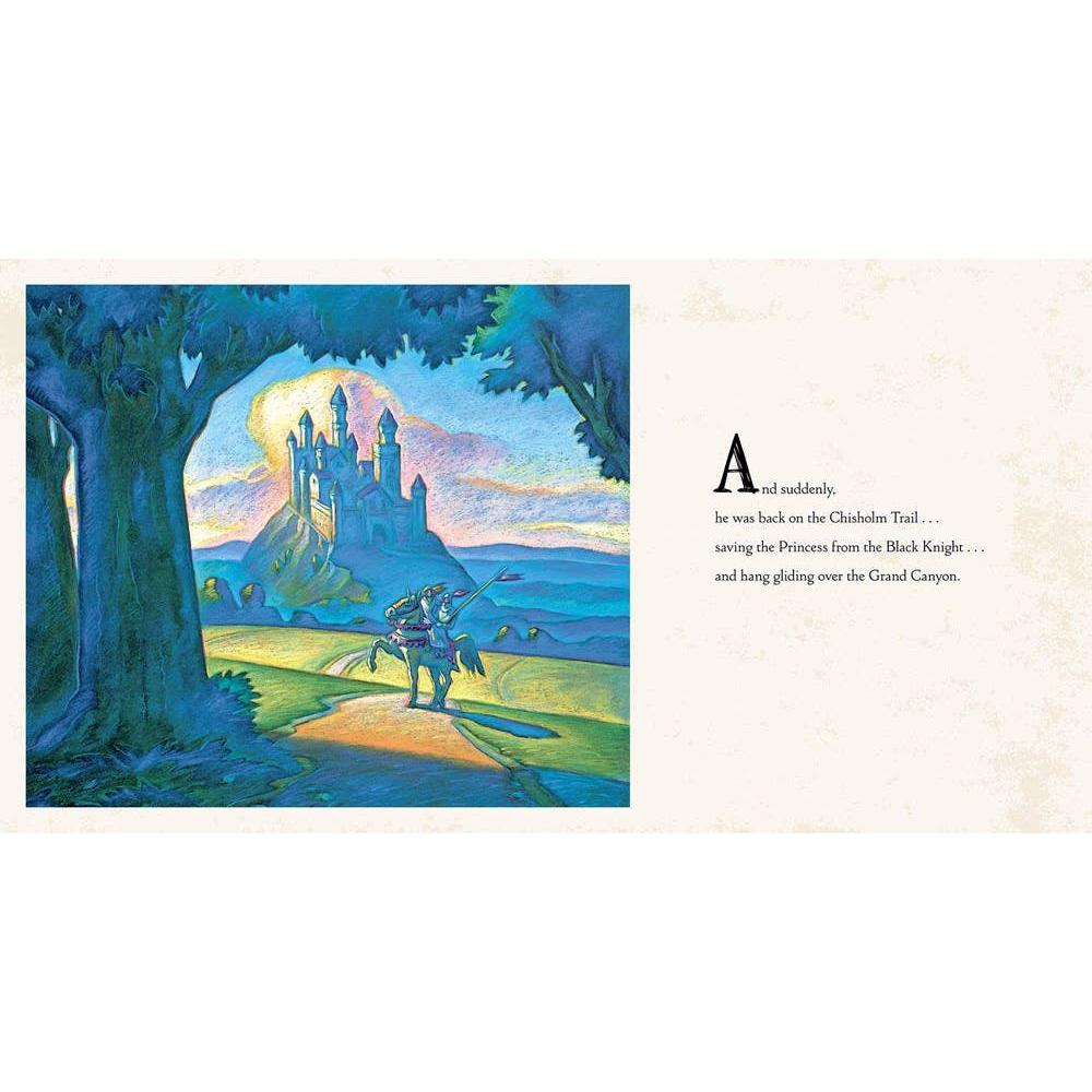 When a boy named William Wilkins puts on his red cowboy boots, his imagination can take him anywhere—to the Amazon River, to the Wild West, to the moon, and even flying on a magic carpet! When his feet outgrow the boots, William is understandably despondent. However after falling asleep one night he discovers he can still visit these far-off places, because the magic is in his mind, not in his boots!