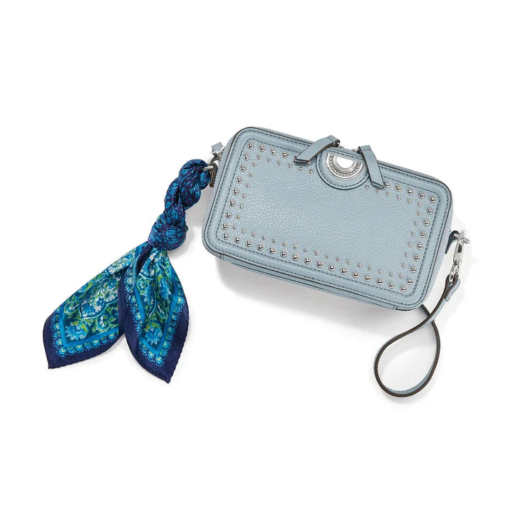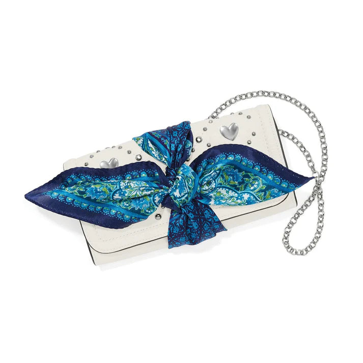 Blues are some of our favorite hues, and this handbag scarf created by our designer features two prints in a medley of those shades – ready to adorn your must-have bags of the season.
