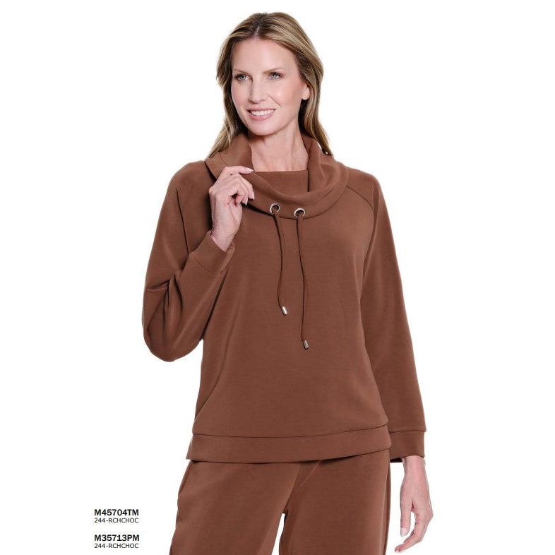 Wide Band Knit Wide Leg Ankle Pant - Chocolate